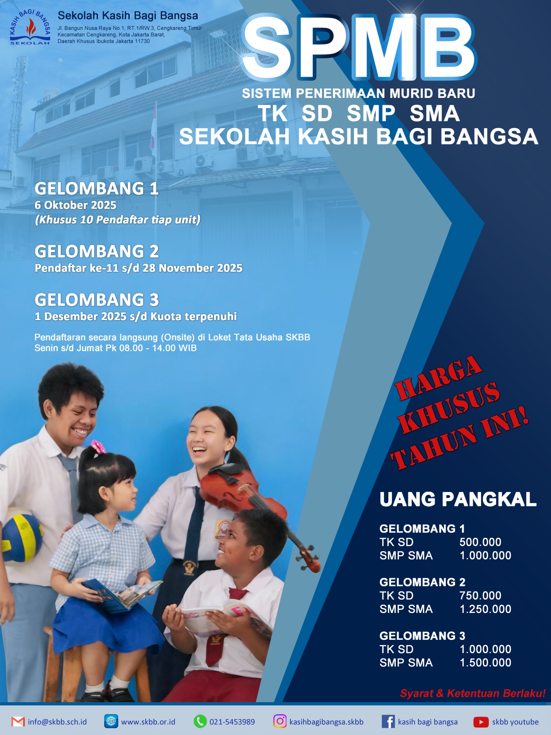 Untuk informasi dapat hadir langsung di Tata Usaha Sekolah Kasih Bagi Bangsa.